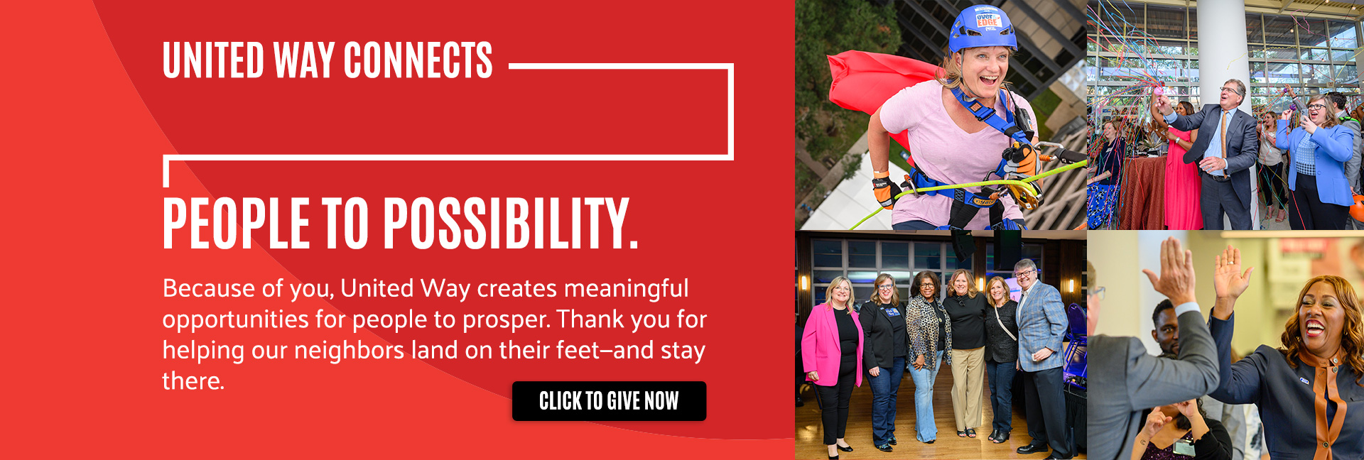 The challenges our neighbors face are interconnected, and the solutions should be too. We personally guide families and individuals who are ready, helping them access multiple services on their unique financial stability journey. United, we can do so much more than we can do on our own to help our neighbors not only land on their feet and stay there. And you can join us!